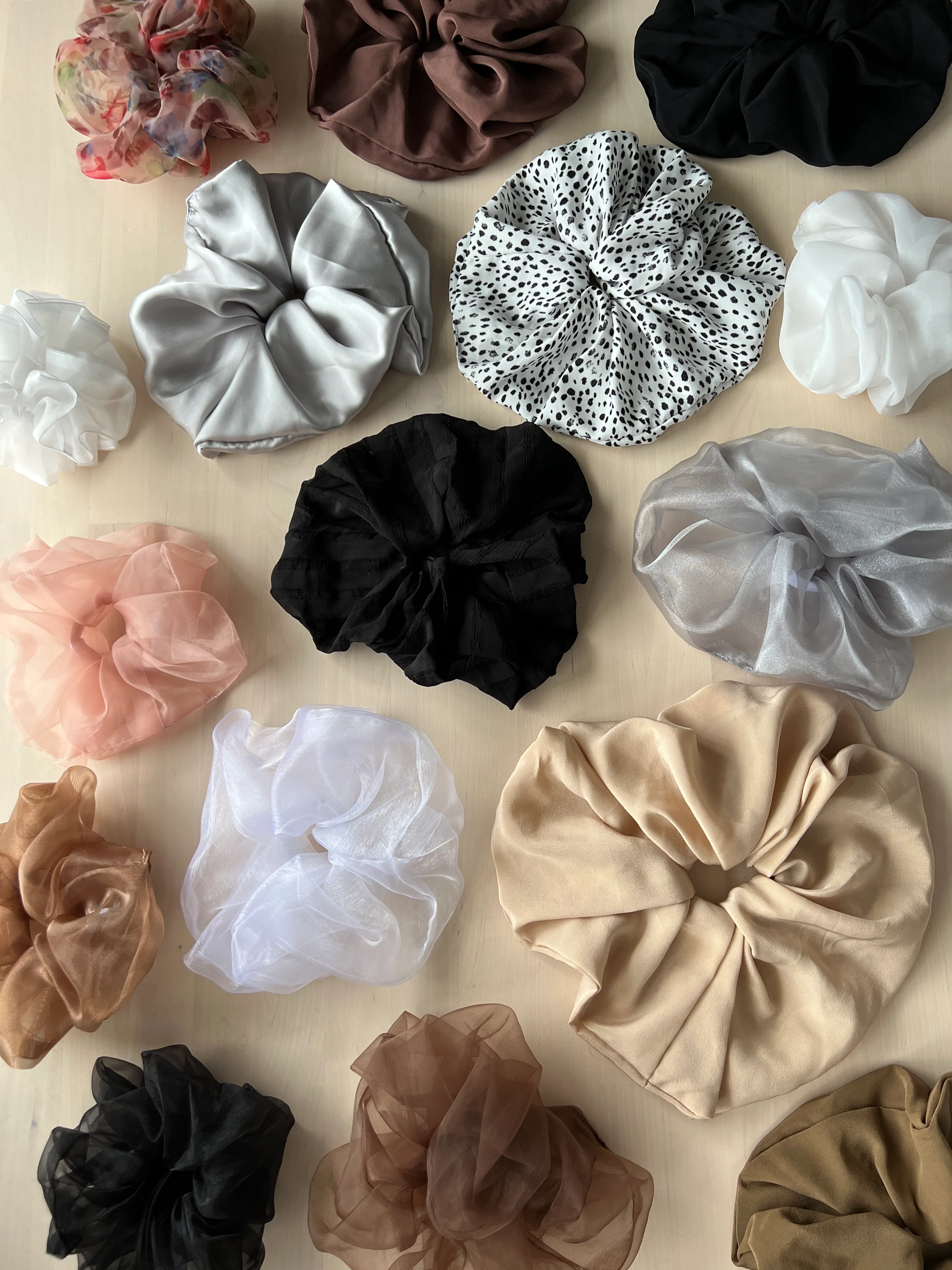 Make an impact with our handcrafted, oversized scrunchies! Choose your size, and we'll chose your colour - made with love from our scrap and deadstock fabrics.